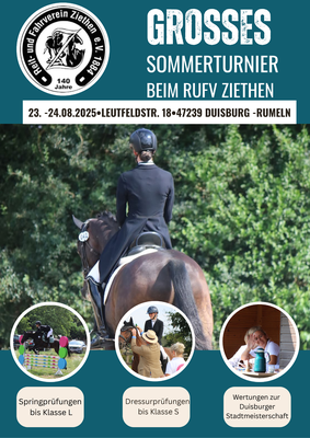 Absolutes Highlight im Jahr und Publikumsmagnet ist immer unser diesmal am 23. + 24.08.2025 stattfindendes Sommerturnier. Nicht nur das Datum hat sich geändert. Wir werden in diesem Jahr wieder ein kombiniertes Dressur- und Springturnier auf unserer Vereinsanlage an der Leutfeldstr. ausrichten. Was sich mal wieder nicht ändert ... unser lekkker Catering und der Spaß am Reitsport !!!